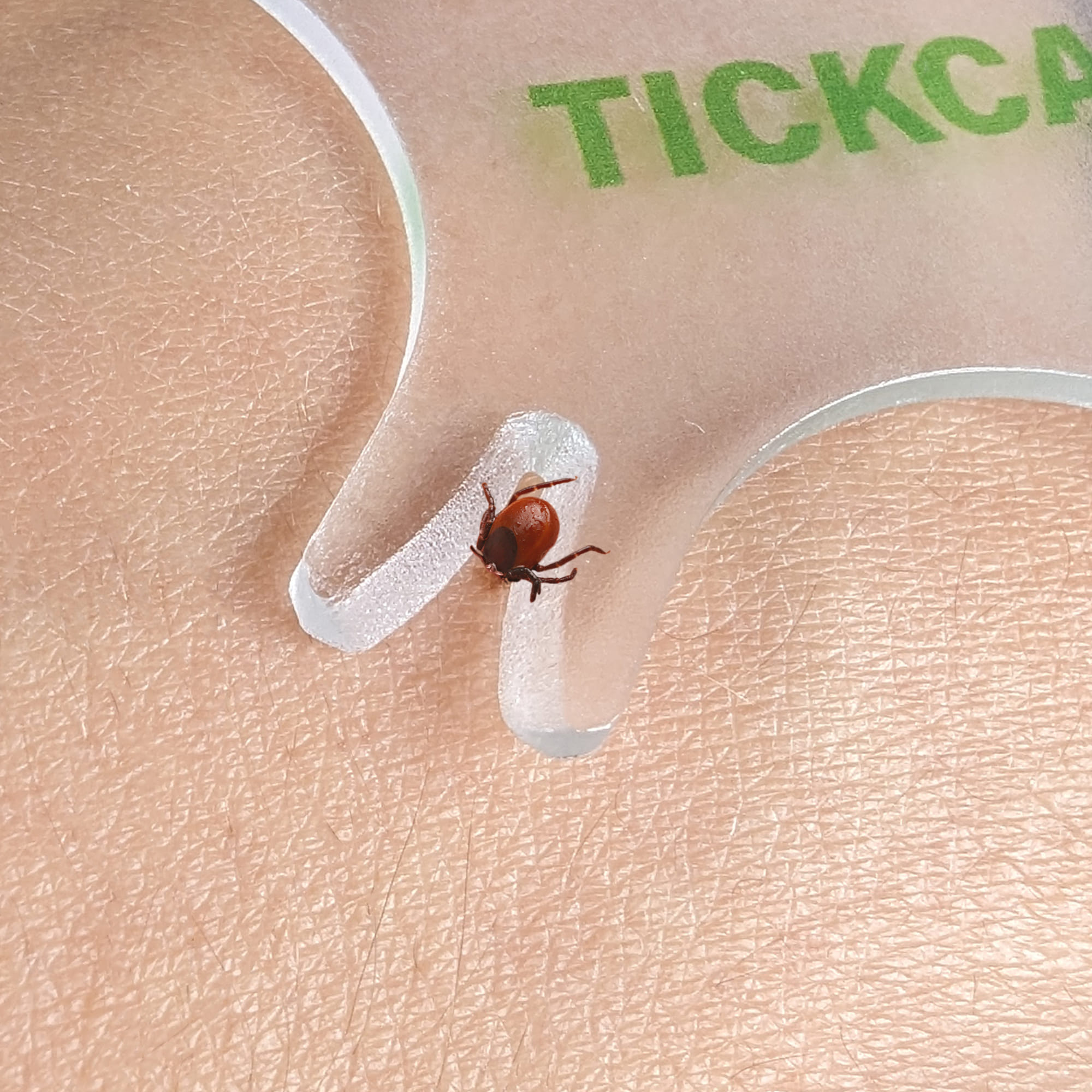 - Heben Sie die Karte leicht an und ziehen Sie die Zecke vorsichtig aus der Haut.